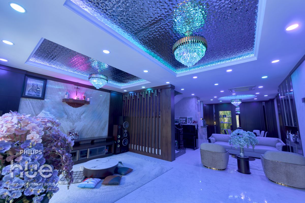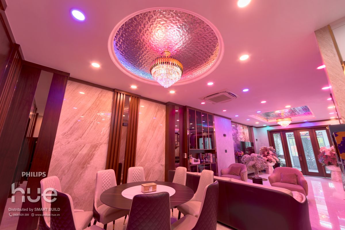 Tại Villa Madam Hiền, Bình Tân – TP. Hồ Chí Minh, giải pháp chiếu sáng thông minh Philips Hue đã được Smart Build tư vấn và triển khai cho toàn bộ không gian công trình. Hệ thống không chỉ giúp tối ưu khả năng chiếu sáng mà còn mang lại trải nghiệm sống hiện đại, linh hoạt và cá nhân hóa theo nhu cầu của gia chủ. Việc ứng dụng smart lighting trong villa là một bước tiến quan trọng trong xu hướng phát triển nhà ở thông minh tại Việt Nam, nơi công nghệ được tích hợp trực tiếp vào không gian sống để nâng cao chất lượng cuộc sống.